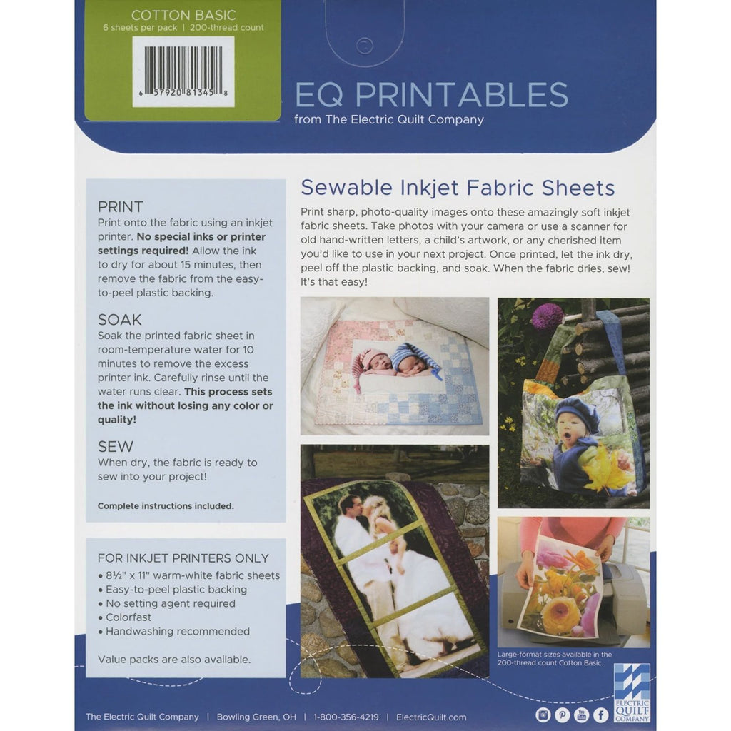 Print sharp, photo-quality images from your computer onto these soft (never rubbery!) fabric sheets. You become a fabric designer as you scan in photos, flowers, love letters, or whatever. Then print, let dry, peel off the plastic backing and soak in cool water for 10 minutes. When the fabric dries, sew!